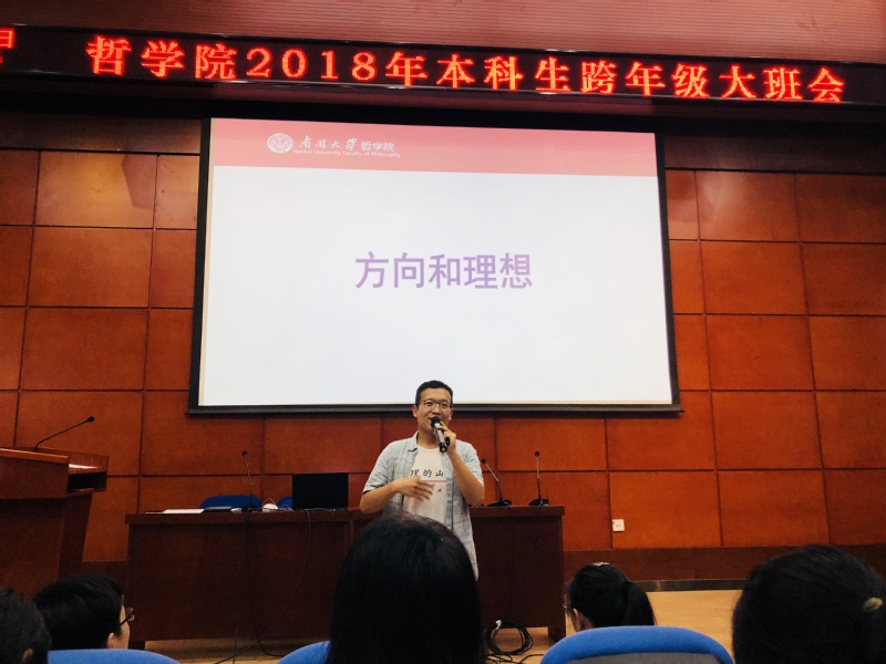 班会上,第六届周恩来班班长杨毓康、赴西部支教的韩娇娇、公能朋辈导师胡晓晓等yl1111永利集团2018届优秀本科毕业生代表通过现场展示、视频连接等方式分别从明确学业目标、坚定理想信念,做好生涯规划等方面向学弟学妹们进行了分享,他们的分享引发了同学们对人生方向的思考。2015级班长程鹏源、2016级吴岳恒和2017级杨云皓分别畅谈了自己的理想,表示新时代哲院学子应该脚踏实地,坚持自己的目标,不忘初心,勇往直前。