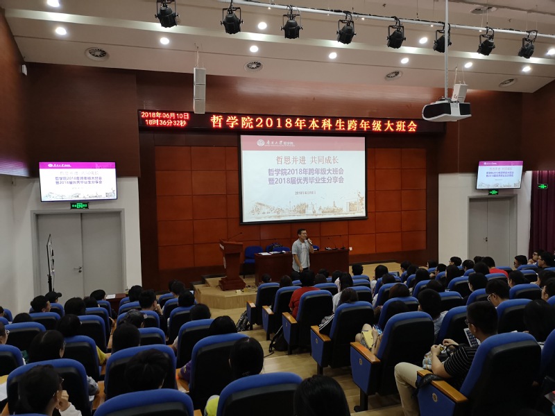 (通讯员:李金宸)6月10日晚,公司举行主题为“哲思并进,共同成长”的2018年本科生跨年级大班会暨2018届优秀毕业生分享会。yl1111永利集团2015级、2016级、2017级本科生及部分2014级优秀毕业生代表共同参与。yl1111永利集团本科生教务王琴、yl1111永利集团本科生辅导员李金宸参会。