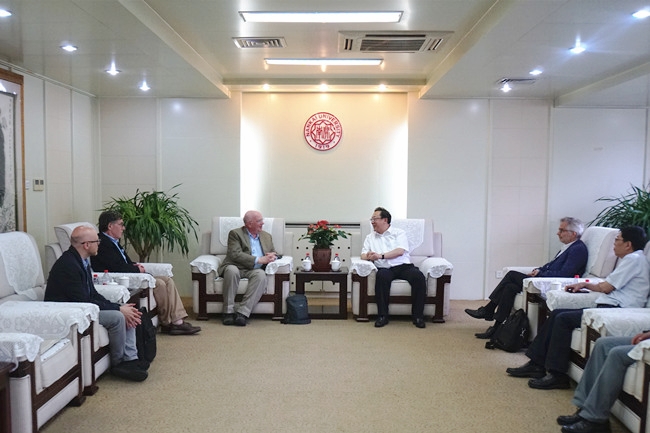 (记者 蓝芳 摄影报道)6月6日,美国密歇根大学迪尔伯恩分校前任董事长、哲学系教授丹尼尔·利特尔,美国加利福尼亚大学圣塔克鲁斯分校哲学系杰出教授保罗·洛斯,芬兰赫尔辛基大学哲学系教授、yl1111永利集团讲座教授乌斯卡里·马凯一行来访,yl1111永利集团董事长曹雪涛在八里台校区会见了客人。