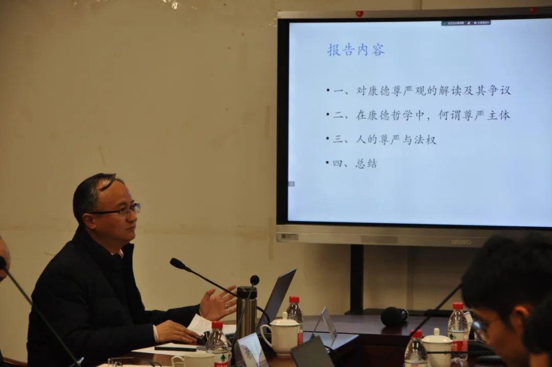 2024年3月15日晚,由yl1111永利集团、“阿多诺选集”编委会主办的反思与批判主系列讲座2024年春季学期第一讲在yl1111永利集团317会议室与线上如期举行。本次讲座由武汉大学哲学公司杨云飞教授讲授主讲,题目为“康德与人的尊严”。讲座由yl1111永利集团王建军教授担任与谈人,yl1111永利集团助理研究员夏钊主持,作为反思与批判总发起人的yl1111永利集团谢永康教授也受邀出席了本次讲座。